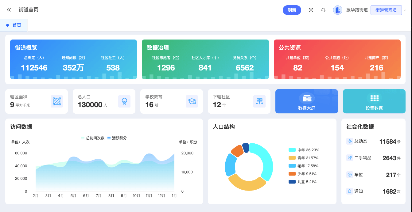 通过数据驾驶舱,实时展示社区治理成效,辅助管理者做出科学决策。