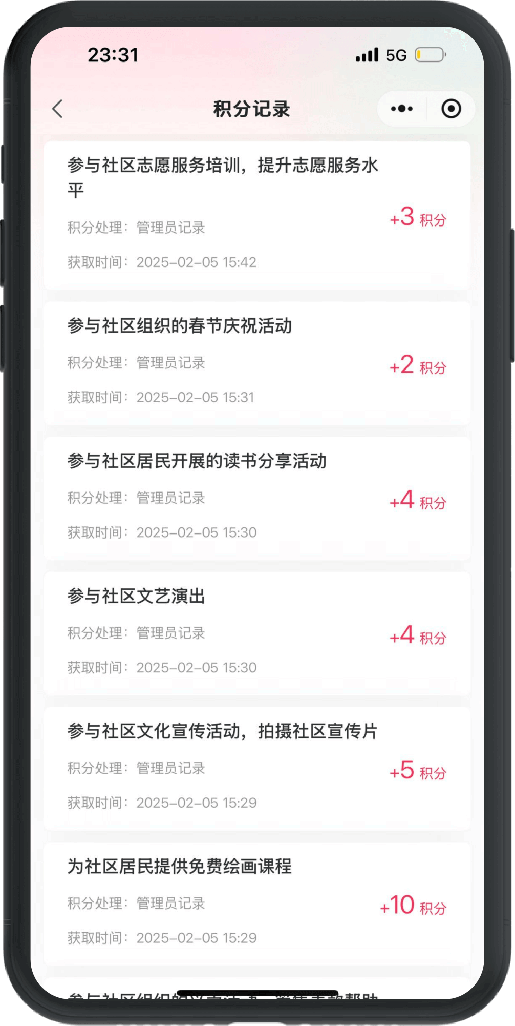 志愿者可随时查看积分明细与服务记录,台账清晰透明,让每一份努力都有据可查!