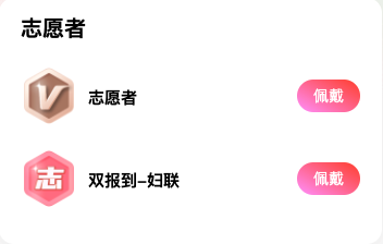 志愿者支持分类,每一种分类都可形成徽章佩戴,让志愿者的每一次发言都与众不同!