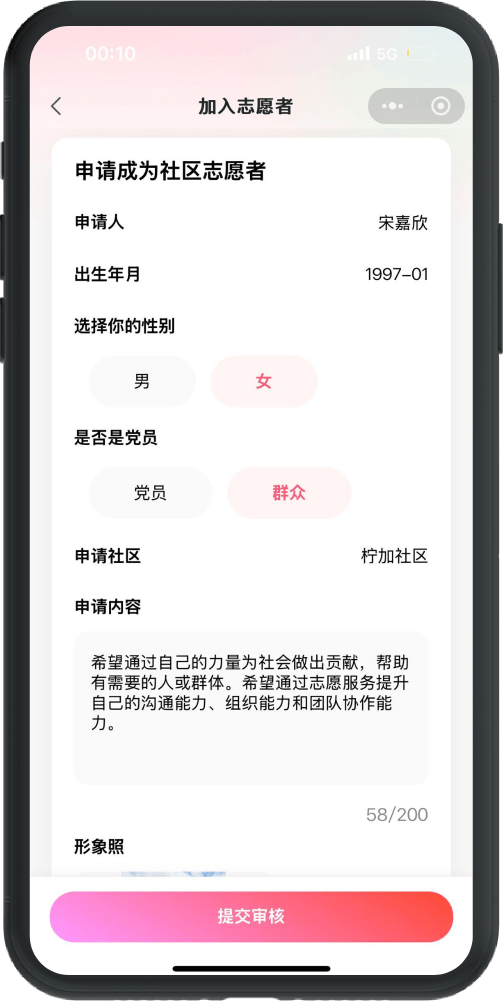 无论是志愿者、居民还是社区管理者,我们提供简洁直观的操作界面,让志愿服务变得触手可及。一键报名、智能通知、服务记录自动归档,让志愿服务更便捷、更贴心。